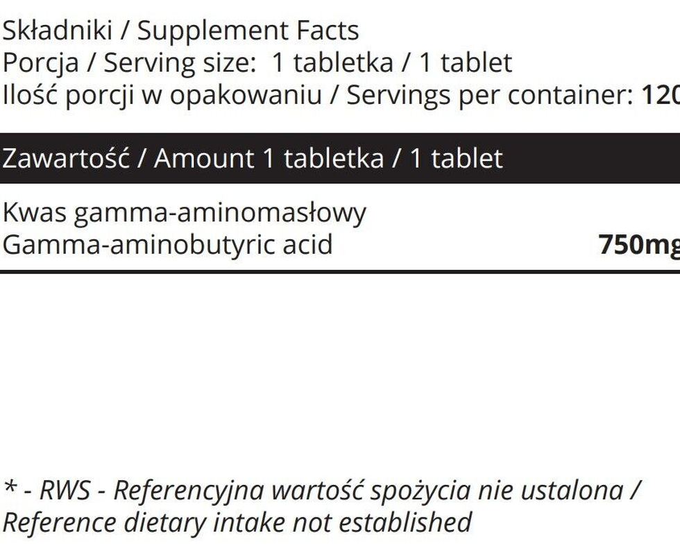 SOWELO GABA is a dietary supplement containing 750 mg of gamma amino butyric acid in one serving. GABA is an amino acid and a very important inhibitory neurotransmitter - its use reduces the excitability of nerve cells. In practice, such action means that it is easier for us to relax, and the feeling of tension and fear is reduced when we are subjected to stress. With the above in mind, it can be concluded that gamma-aminobutyric acid may have anti-anxiety, sedative and sleep-promoting effects. In addition, GABA can help to increase the regeneration of the muscular system by reducing the tension and relaxation of muscle fibers.