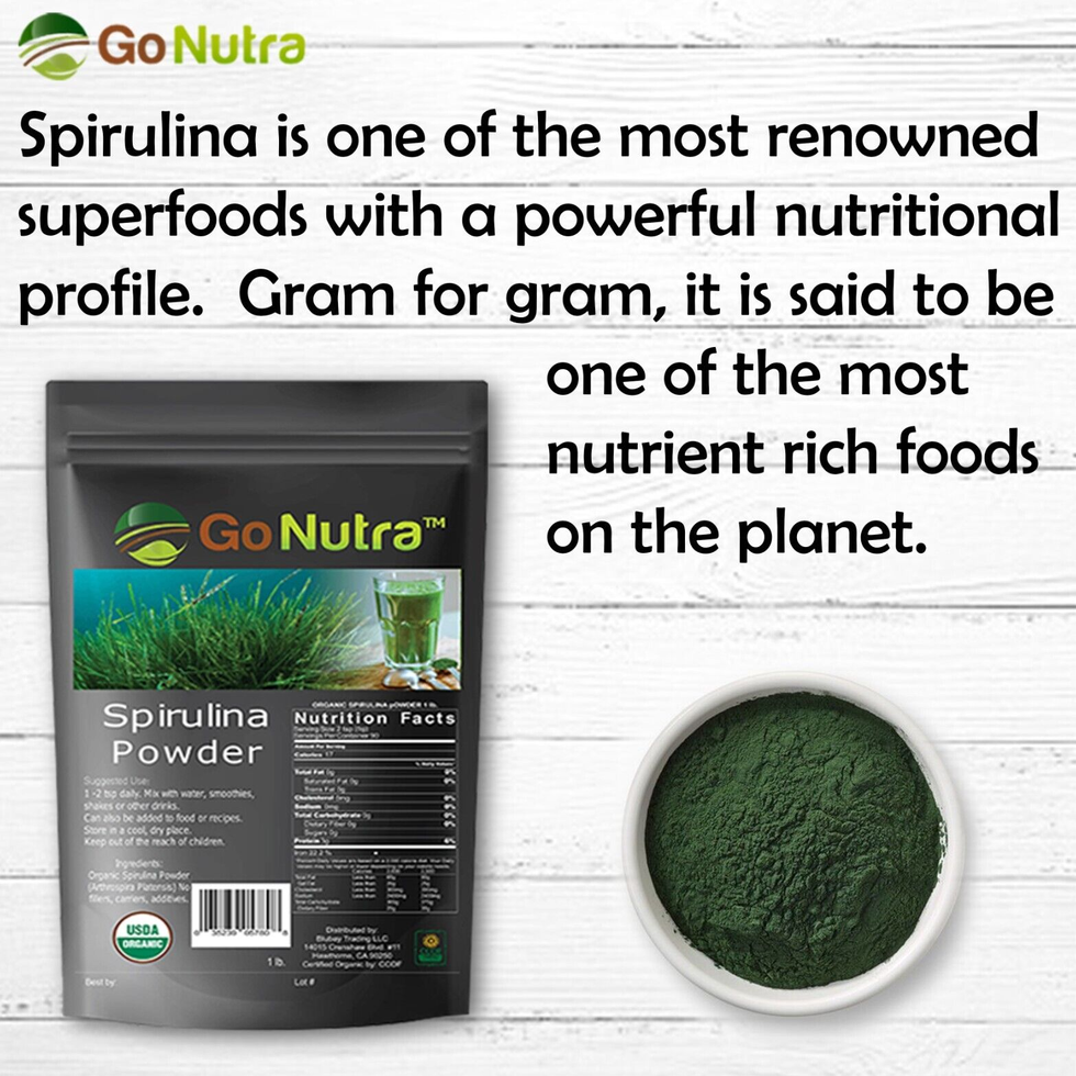 Spirulina pwd Organic 1 Lb. Pure Non-Gmo Non-Irradiated Blue Algae Superfood