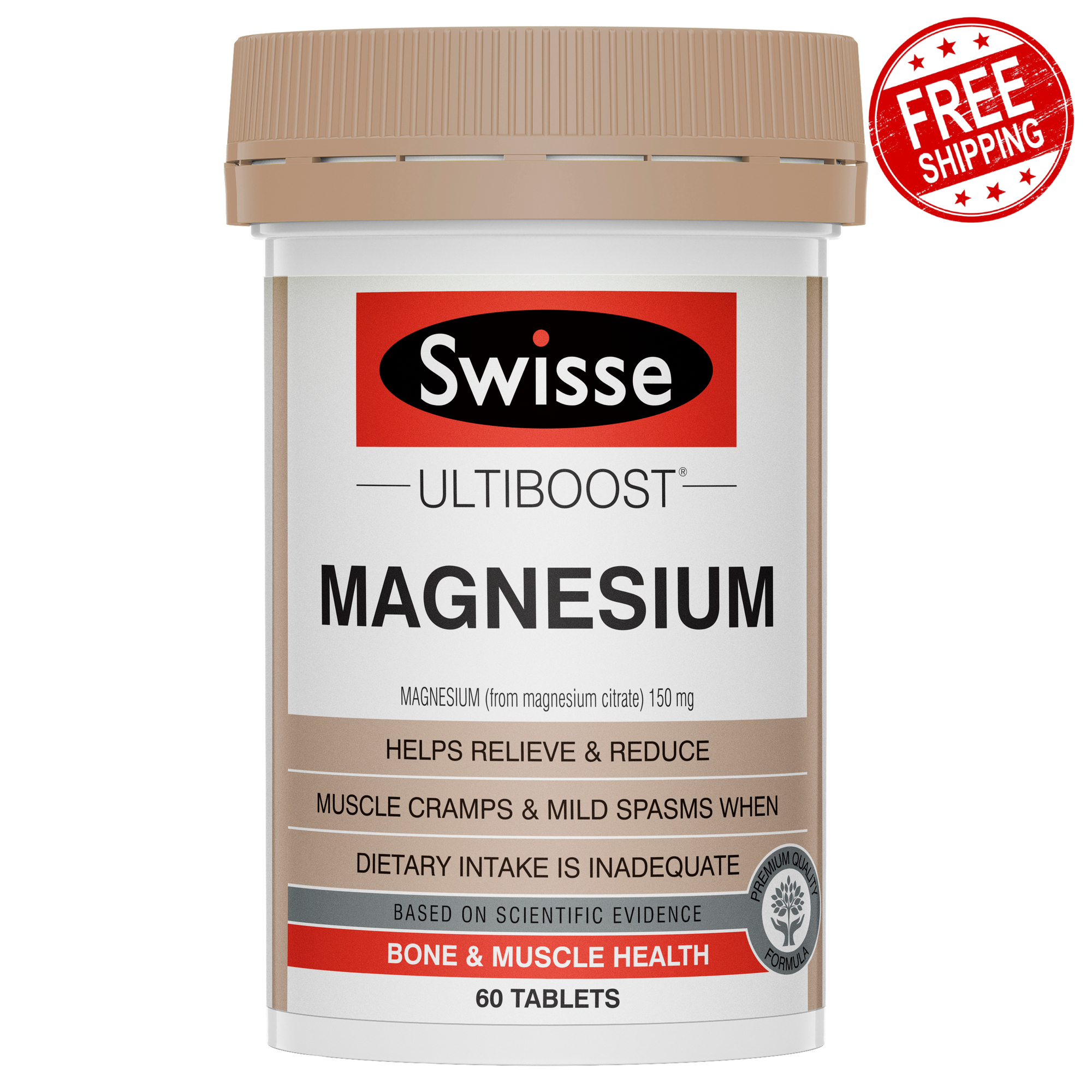 AUS Listing Template Welcome to Our Official Store Factors such as diet and excess alcohol intake may reduce magnesium levels. Swisse Ultiboost Magnesium has been formulated based on scientific evidence to support a physically active lifestyle. Absorption Formulated with a bioavailable form of magnesium (citrate) to help optimise absorption. Muscle Cramp Relief Magnesium provides relief and helps reduce the occurrence of muscle cramps when dietary intake is inadequate. It also supports healthy muscle function and relaxation. Relieves Mild Muscle Spasms Magnesium helps relieve and reduce mild muscle spasms and twitches when dietary intake is inadequate. Nervous System & Adrenal Gland Support Magnesium helps support a healthy nervous system. It also assists adrenal gland health, which helps regulate the body’s physiological response to stress and supports stress recovery. Energy Production Magnesium aids the digestion of carbohydrates and fats to help convert them into energy. Heart Health Support Sufficient levels of magnesium help support heart health and maintain a healthy cardiovascular system. ADULT DOSAGE: General Health: One tablet daily. STORAGE: Store below 30°C. Do not use if cap seal is broken. WARNINGS: If symptoms persist consult your healthcare professional. Warehousediscounted warehouse discounted Warehouse Discounted is here to provide customers with great wholesale prices to retailer shoppers online. Sign up to our newsletter for special deals Copyright © WAREHOUSE DISCOUNTED 2020. All Rights Reserved Service Disclaimers According to the Australian Competition & Consumer Commission, the consumer guarantees do not apply if you got what you asked for but simply changed your mind, found it cheaper somewhere else, decided you did not like the purchase or had no use for it.