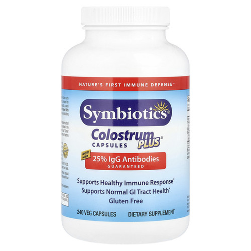 Nature's First Immune Defense™ With 25% IgG Antibodies Guaranteed Supports Healthy Immune Response Supports Normal GI Tract Health Gluten Free Dietary Supplement Immune Factors Quality & Purity Assured Symbiotics Colostrum Plus features key natural Immune Factors such as Immunoglobulins, which are types of proteins that are used by the immune system to identify and neutralize foreign objects, as well as Lactoferrin, which is a multifunctional protein and Proline-Rich Polypeptides, which have a very powerful effect in actively modulating the immune response. The Immune Factors found in Symbiotics Colostrum Plus have a dual action effect, working systemically throughout the body, as well as in the GI tract, by maintain healthy intestinal flora in a normal GI tract
