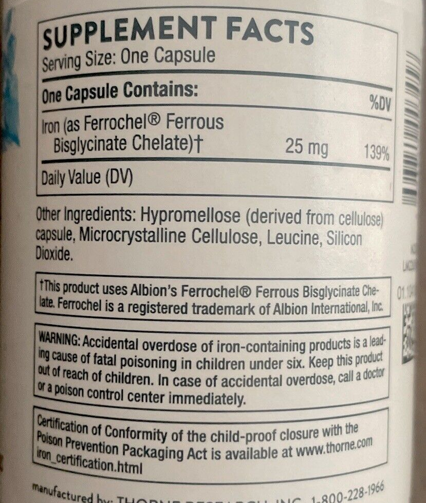 Thorne Iron Bisglycinate NSF, #60 Caps.