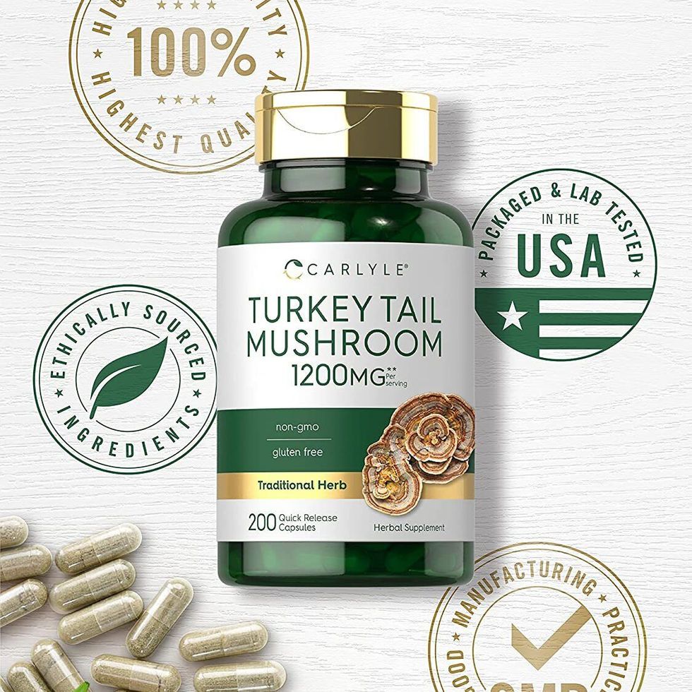 Turkey Tail Mushroom Capsule 1200Mg | 200 Count | Non-Gmo | by Carlyle