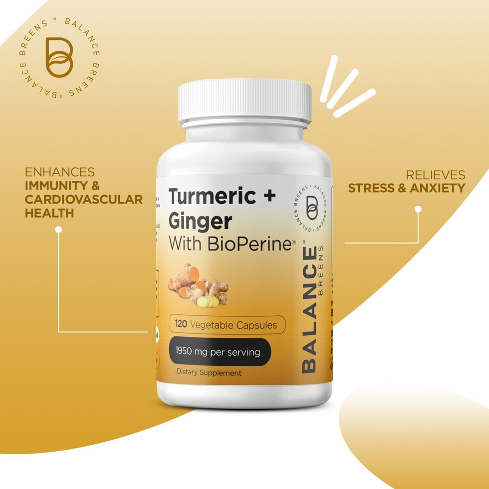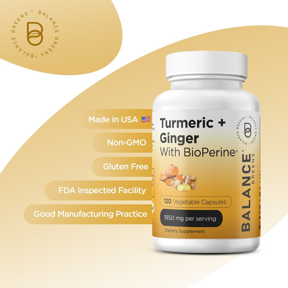 Turmeric Ginger with Black Pepper -1950 MG -120 VegCap, Balance Breens