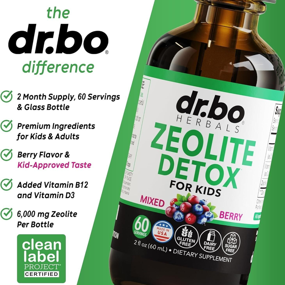- Gentle: 2 month supply daily support great for kids & adults; extra strength Dr. Bo Zeolite Detox for kids liquid drops has a great berry taste for children to enjoy clinoptilolite zeolite drops