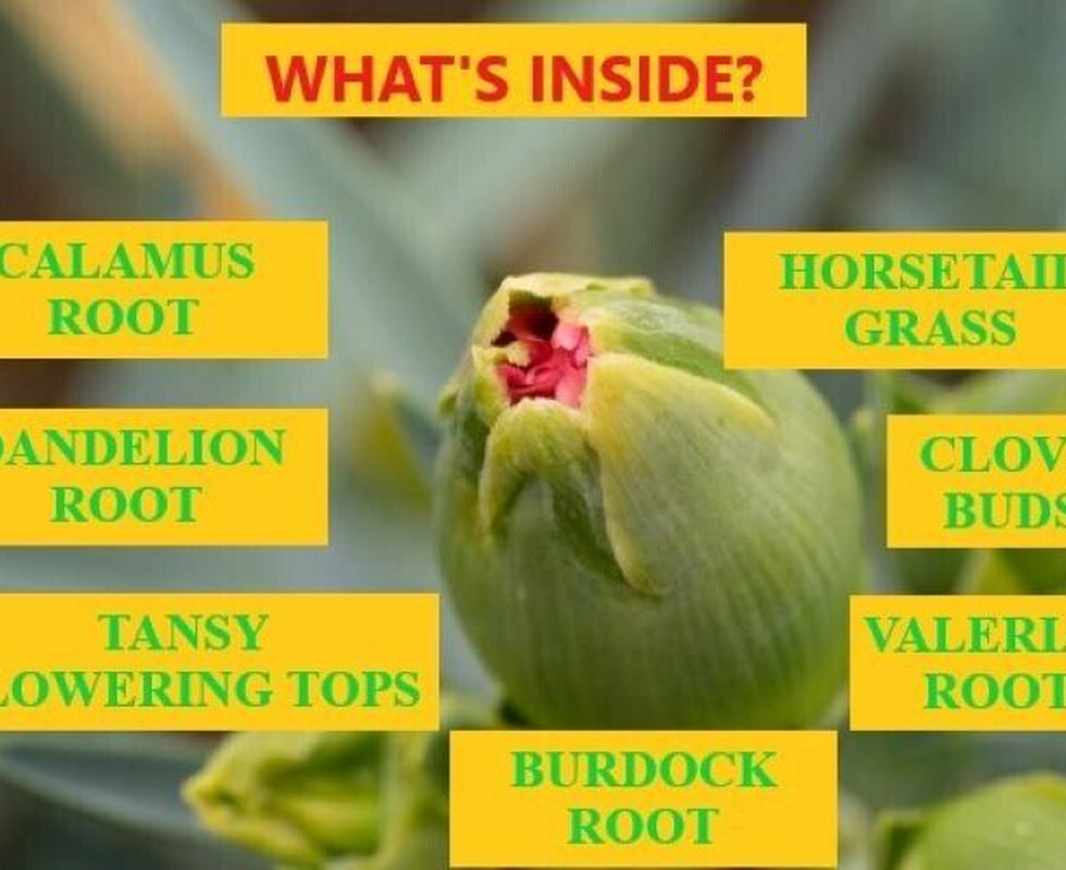 Each bottle contains 180 capsules ( 3 months supply) colon detox anti-parasite (Burdock root powder, Dandelion root powder, Calamus root powder, Clove buds, Horsetail grass powder, Tensy flowering tops and Valerian Root powder).