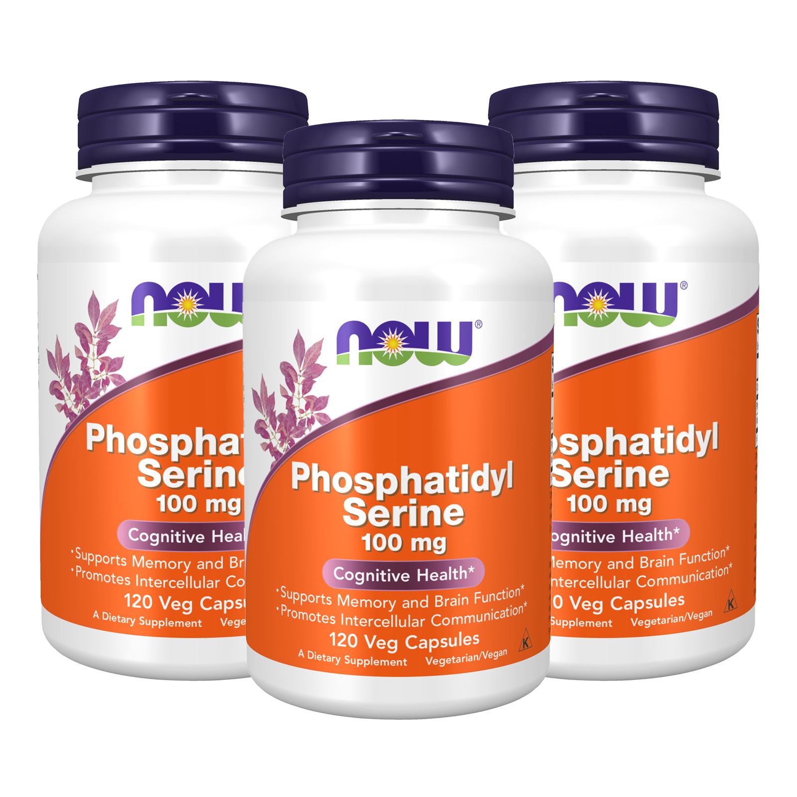 3 x NOW Phosphatidyl Serine Cognitive Health 100mg 120 Vcaps Memory Brain Health