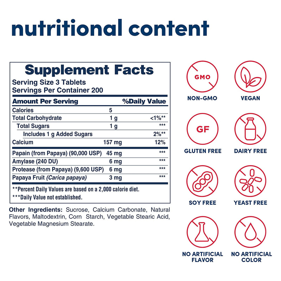 American Health Original Papaya Enzyme Chewable 600 Tablets