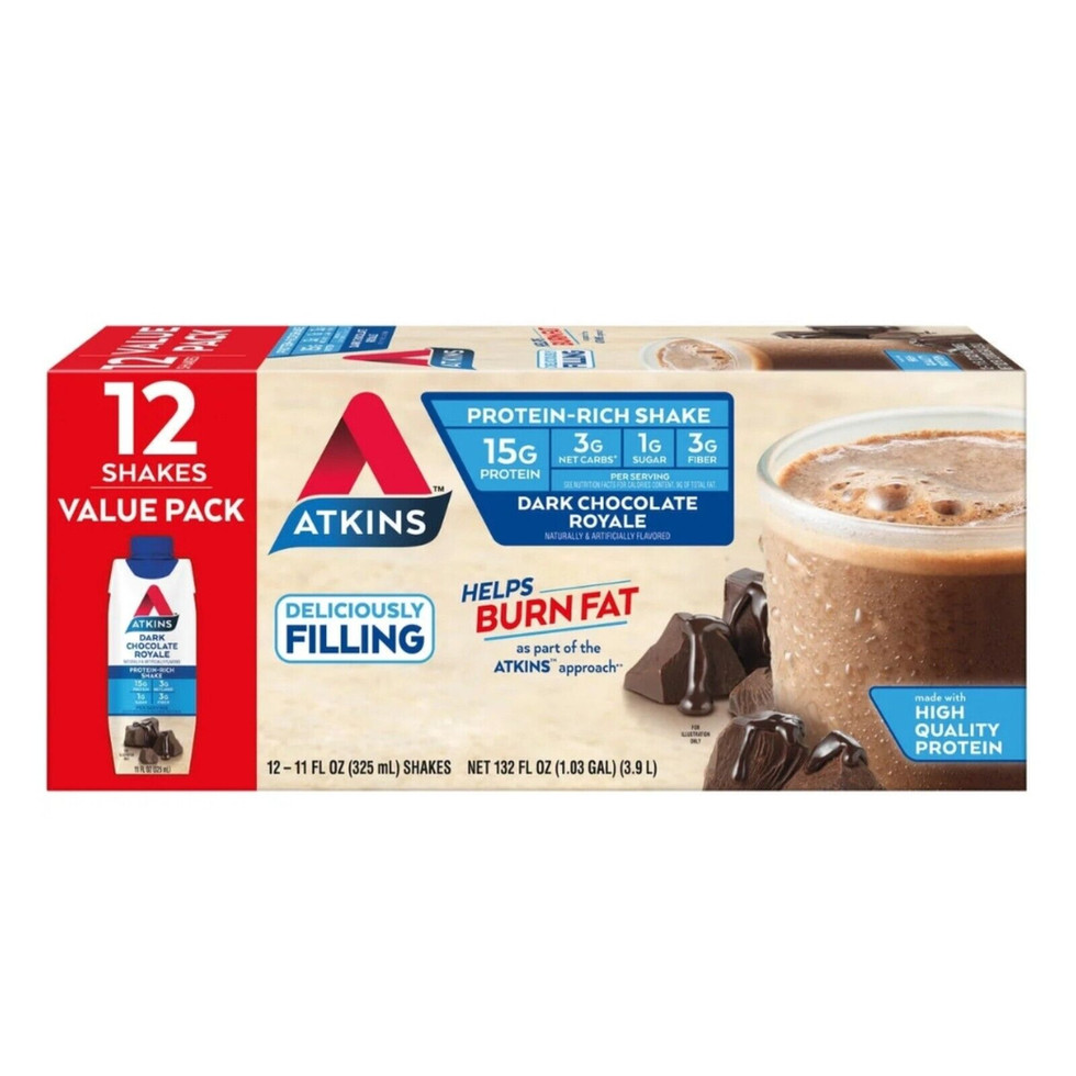 Atkins 15g Protein Shake Dark Chocolate Royale, High Protein, Keto Friendly, 12ct Free SHIP.