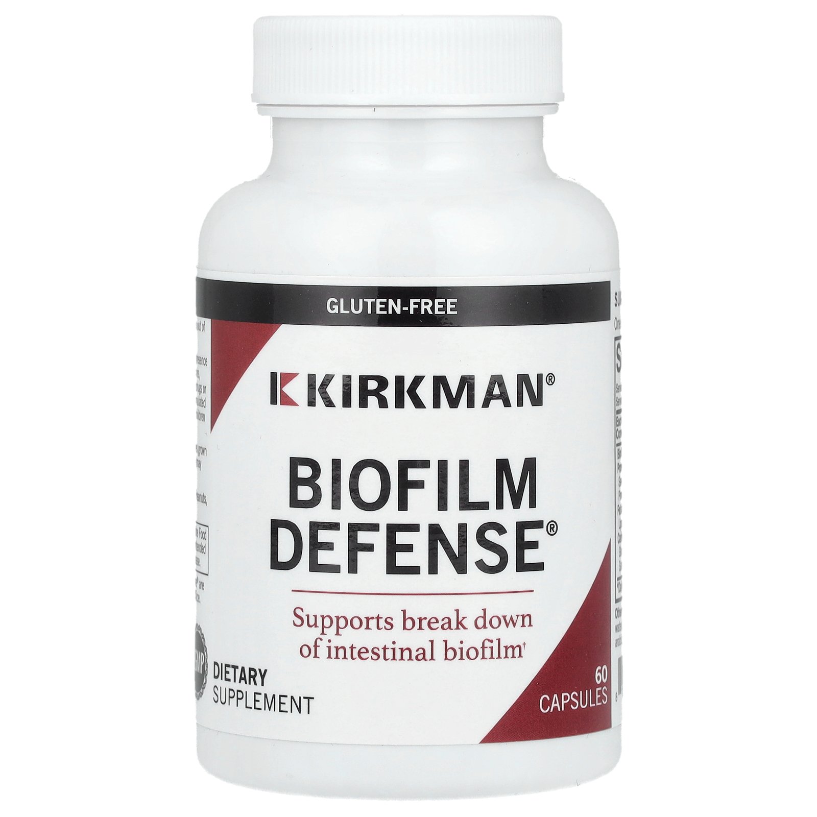 Gluten-Free Supports Break Down of Intestinal Biofilm Dietary Supplement Ultra Tested cGMP Biofilm Defense® contains a combination of unique enzymes that have the ability to dissolve the sugar and fibrin components of biofilms. In the body, biofilm is a slimy substance that protects unhealthy microorganisms from the immune system and allows them to thrive. When the balance of good bugs and bad bugs is disrupted, the immune system cannot function optimally. Scientists have discovered that the composition of most biofilms consists of sugar molecules or polysaccharides, minerals (such as calcium, iron, and magnesium), DNA, and fibrin. Biofilm Defense degrades these components. Because it lacks any significant amount of protease, which can irritate a sensitive GI tract, Biofilm Defense® can be taken on an empty stomach.SUGGESTED USE: