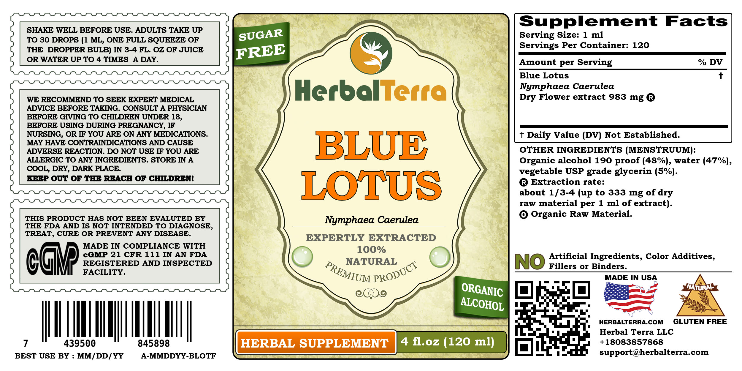 These statements have not been evaluated by the Food and Drug Administration. This product is not intended to diagnose, treat, cure or prevent any disease. Actual product packaging and materials may contain more and different information than what is shown on our website. We suggest consulting with a physician before using this or any other herbal supplements. Made in a FDA registered facility.