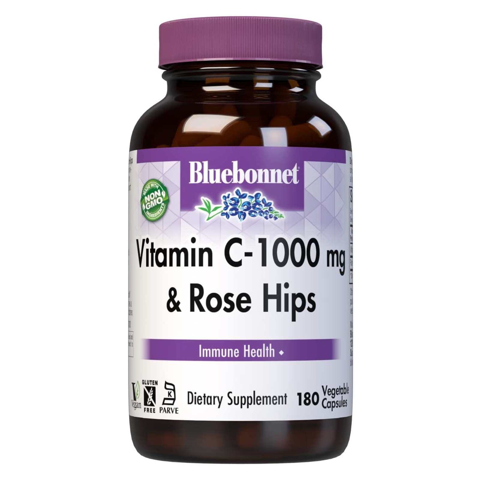 Bluebonnet Vitamin C-1000 mg & Rose Hips 180 Veg Capsules