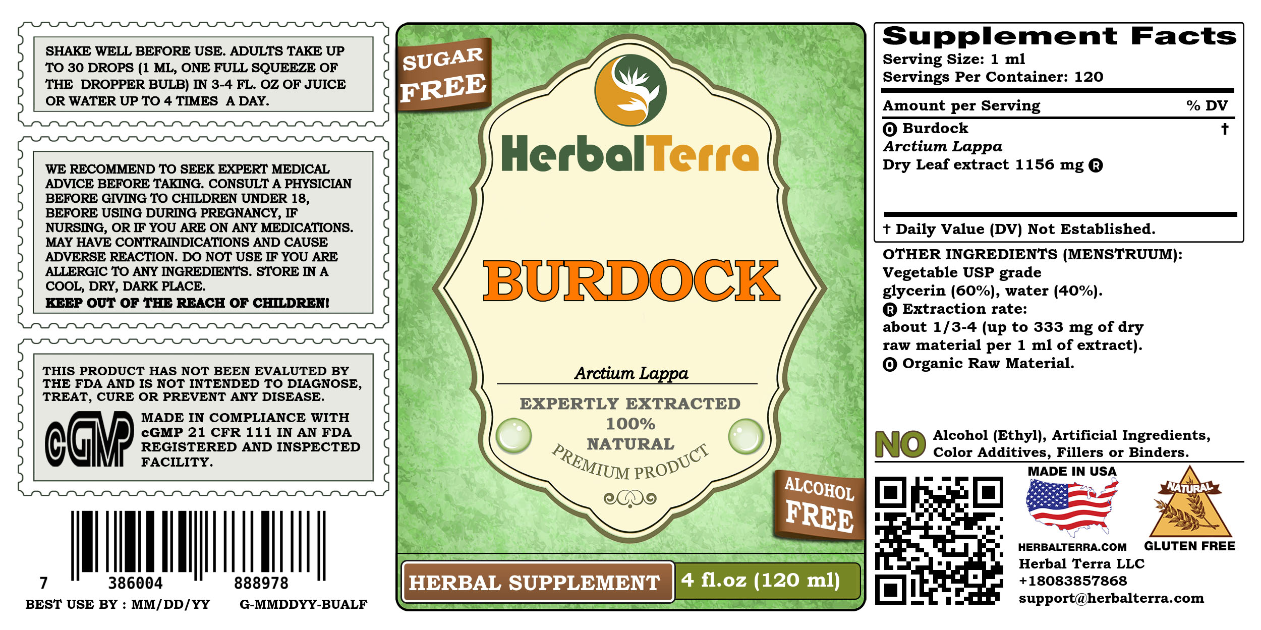- Expertly extracted under strict quality standards and procedures from the Certified Organic Burdock (Arctium Lappa) Dried Leaf. We meticulously produce our extracts according to precise standards where each herb is extracted according to the distinct characteristic of each plant!