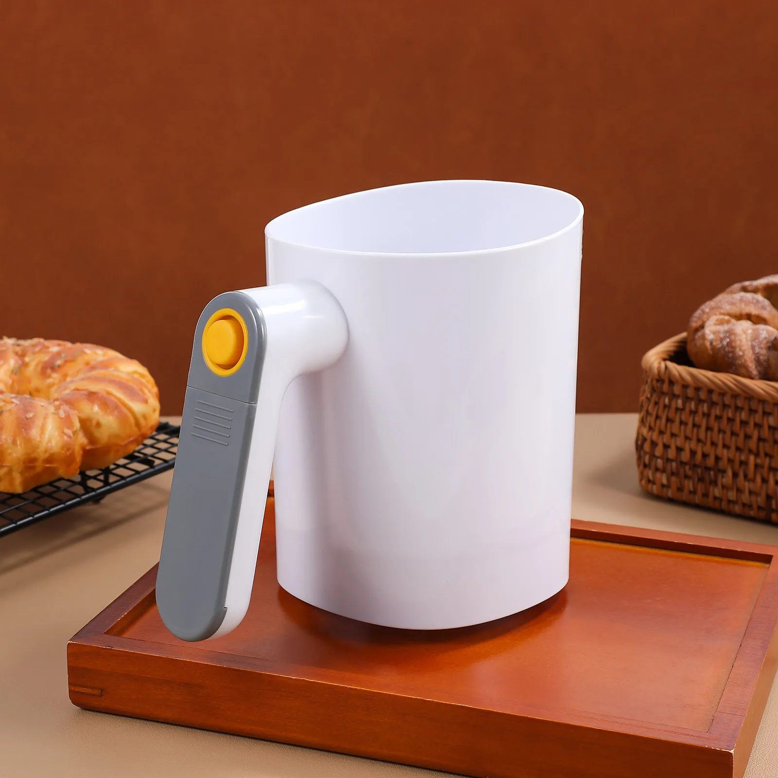 This handheld electric flour sifter is designed for home baking enthusiasts. It features a sleek and ergonomic design, making it easy to handle and operate. The automatic sifting mechanism ensures a smooth and consistent texture for your flour, enhancing the quality of your baked goods. Ideal for sifting flour, powdered sugar, and other dry ingredients, this tool simplifies your baking process and ensures results every time.
