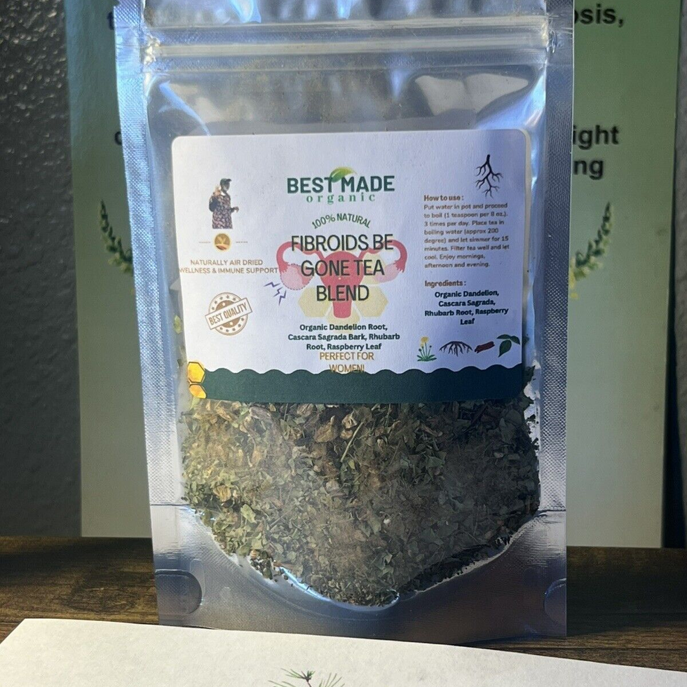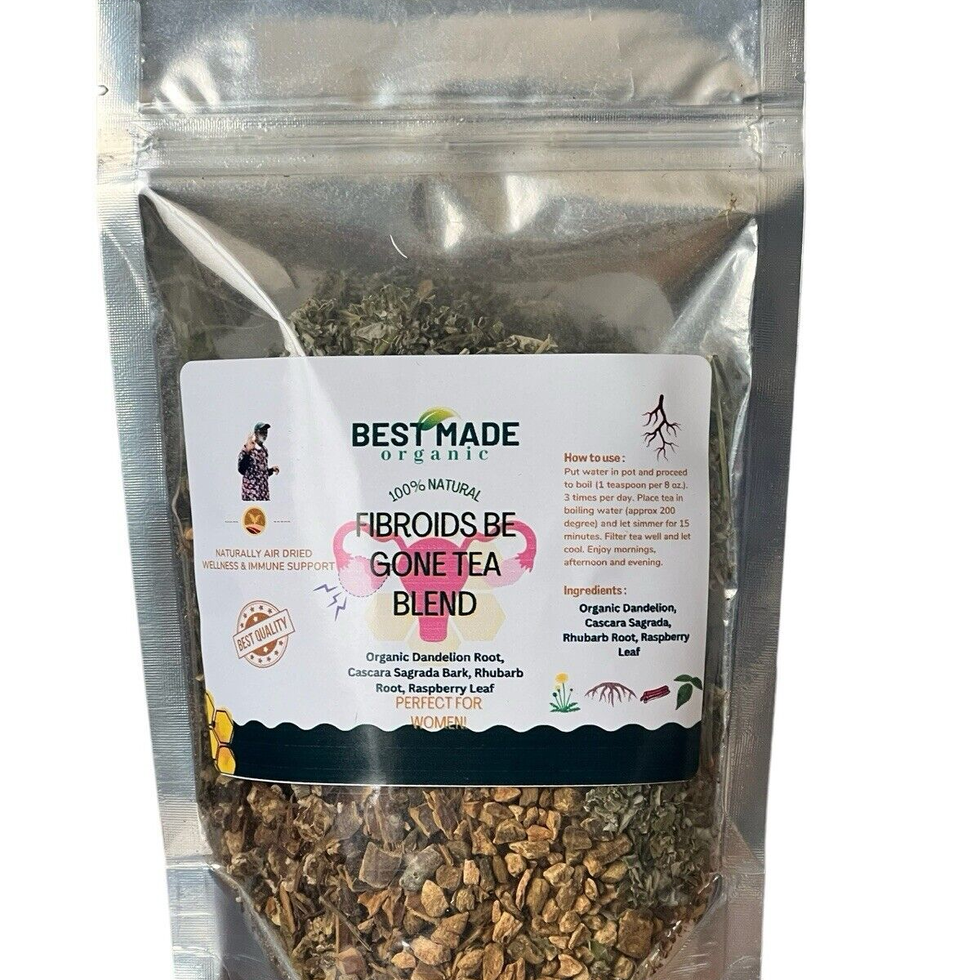 The "Fibroids Be Gone Tea Blend" is an organic loose leaf herbal tea specifically designed to target fibroids. This tea falls under the brand Bestmadeorganic and is found in the pantry aisle. It is classified as an herbal/tisane tea and is suitable for those looking for a natural solution.