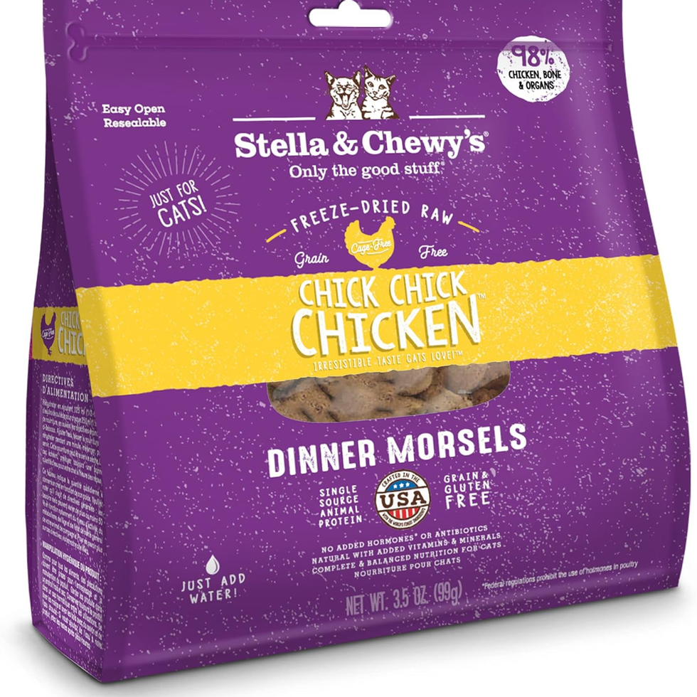 Freeze-Dried Raw Cat Dinner Morsels – Grain Free, Protein Rich Cat & Kitten Food – Chick Chick Chicken Recipe – 3.5 Oz Bag