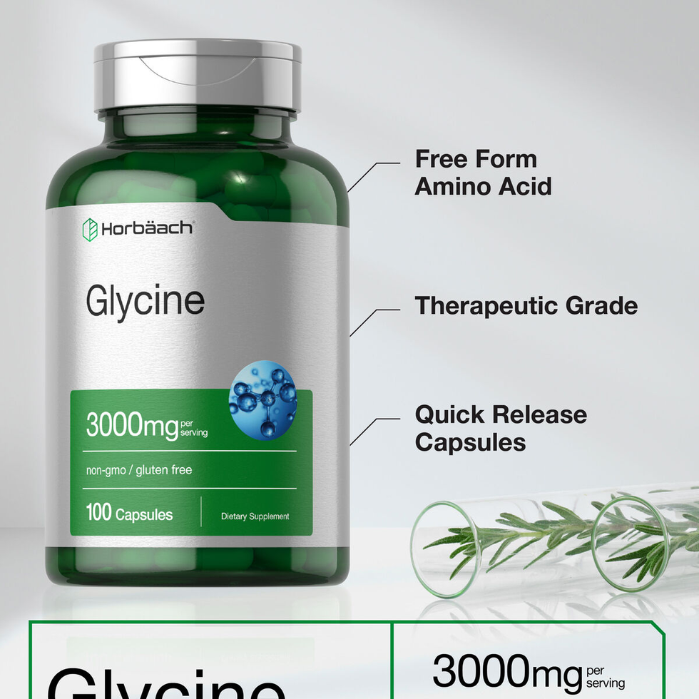 Glycine Capsules | 3000 Mg | 100 Count | Non-Gmo, Gluten Free | by Horbaach