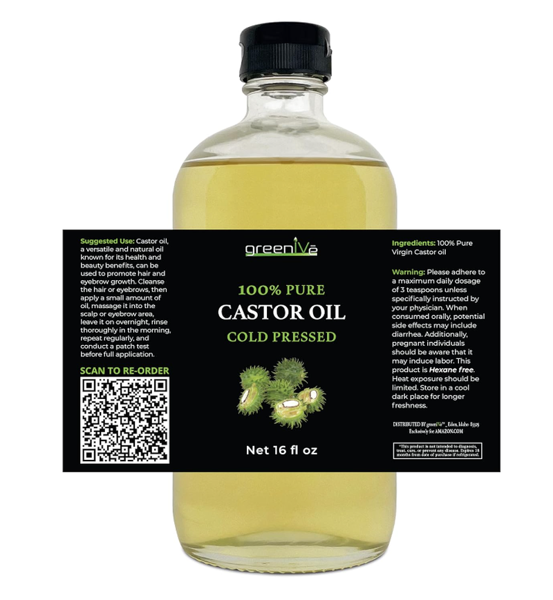 GREENIVE -100% PURE CASTOR OIL - ORGANICALLY GROWN - COLD PRESSED - HEXANE FREE