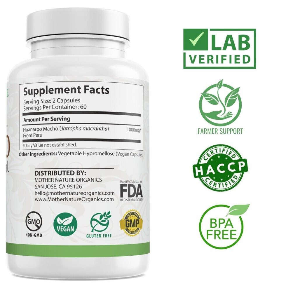 NON-GMO, GLUTEN FREE, DAIRY FREE & VEGAN: Specially formulated for male performance, strength, and endurance, Mother Nature Organic’s Huanarpo Macho contains zero fillers or binders and is dairy-free, gluten-free, and allergen-free. Mother Nature Organics Huanarpo is powerfully formulated with natural ingredients to maximize absorption thus ensuring you are getting optimum potency and efficacy in every serving! Achieve fast muscle growth and have explosive stamina with Huanarpo capsules.