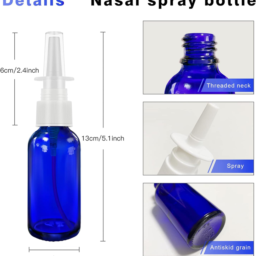 Nasal Spray Bottle Spray Glass Bottles 4Pcs 1oz (30ml) with Press Spray Head Refillable Portable Fine Mist, funnel, dropper,label, empty nose spray glass bottle blue nasal spray bottle