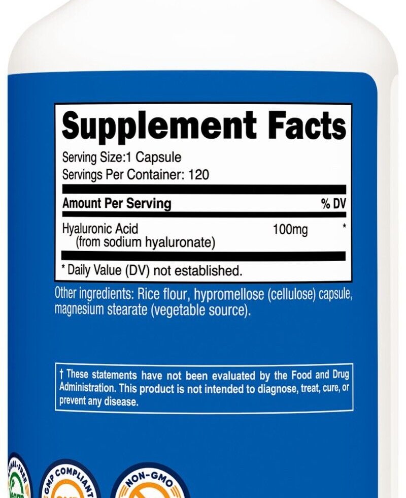- 100mg of Hyaluronic Acid Per Capsule (120 Servings)