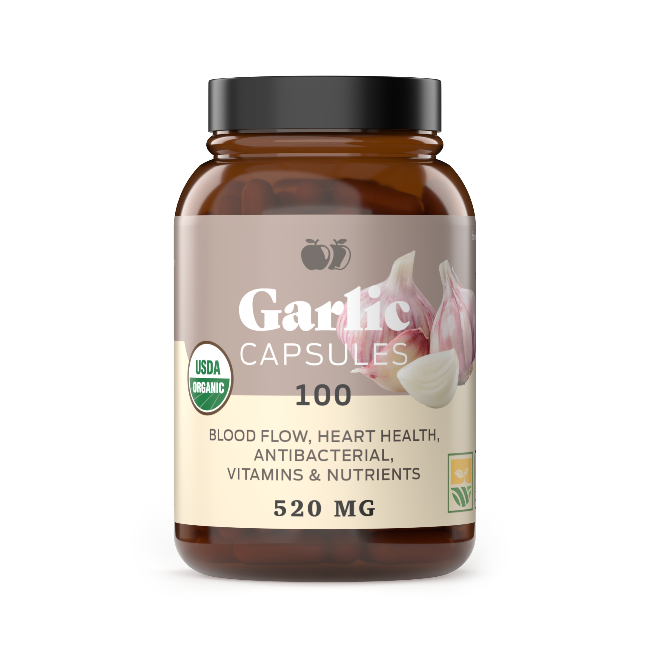 Organic Garlic Capsules - 100 Capsules 600mg Powder Supplement & Pills