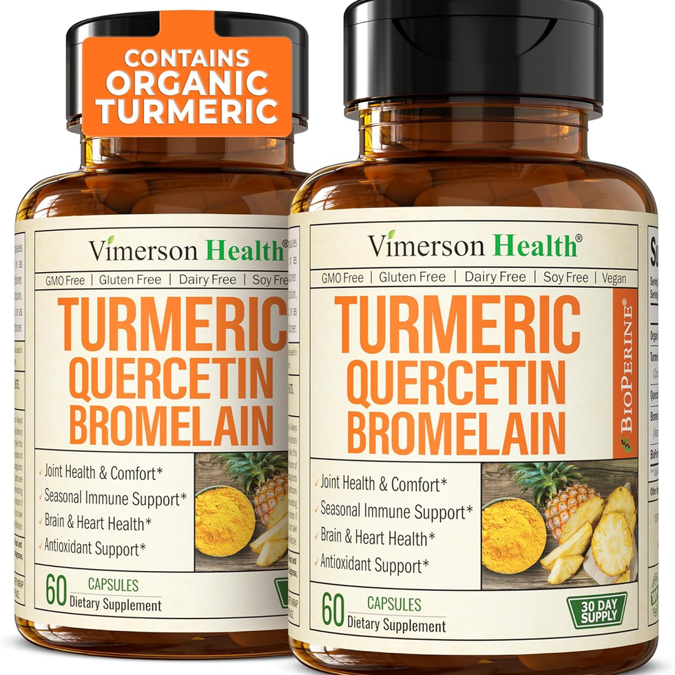 Enjoy better joint mobility with Vimerson Health’s Quercetin with Bromelain Turmeric supplement - a premium, all-in-one joint support supplement formulated with Tumeric & Bromelain powder to help protect your body from harmful free radicals & provide seasonal immune support.*