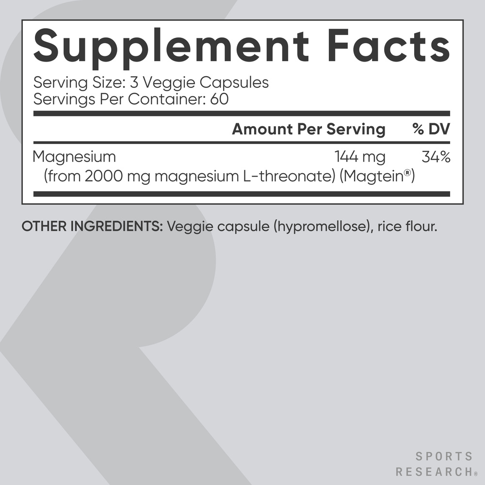 Magnesium L-Threonate 2000mg (180 veggie capsules)