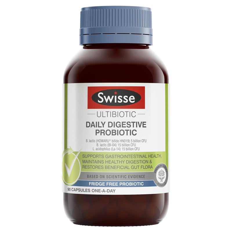 div>AHD Template Swisse Ultibiotic Daily Digestive Probiotic is a premium quality formula combining three clinically trialled strains-Bifidobacterium lactis (HN019), Bifidobacterium lactis (BI-04) and Lactobacillus acidophilus (La-14). Swisse Ultibiotic Daily Digestive Probiotic is specifically formulated to Size: 90 Pack STORAGE INSTRUCTIONS